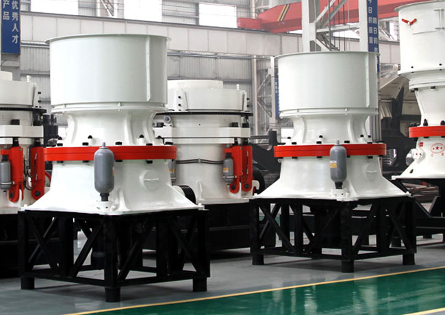 工作时,电动机的旋转带动皮带轮、传动轴和圆锥部在偏心套的迫动下作旋摆运动,从而使圆锥破碎机的破碎壁时而靠近又时而离开固装在上架体上的轧白壁表面,使矿石在破碎腔内不断受到冲击被破碎,破碎的物料从下部排出。