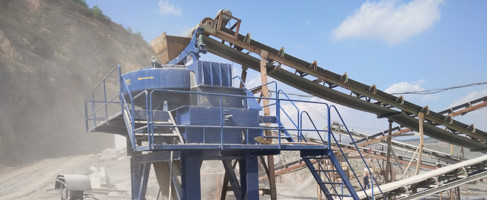 大块石料经料仓由振动给料机均匀地送进颚式破碎机进行粗碎,粗碎后的石料由皮带输送机送到反击式破碎机进行进一步破碎,细碎后的石料由皮带输送机送进振动筛进行筛分,筛分出几种不同规格的石子,满足粒度要求的石子由成品皮带输送机送往成品料堆,不满足粒度要求的石子由皮带输送机返料送到反击式破碎机进行再次破碎,形成闭路多次循环。